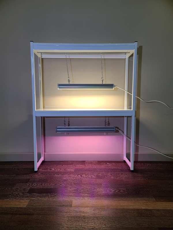 Чтобы создать для рассады подходящие условия, на одной полке шириной 40 см и длиной 50 см придется закрепить, например, две люминесцентных лампы мощностью 18 Вт.