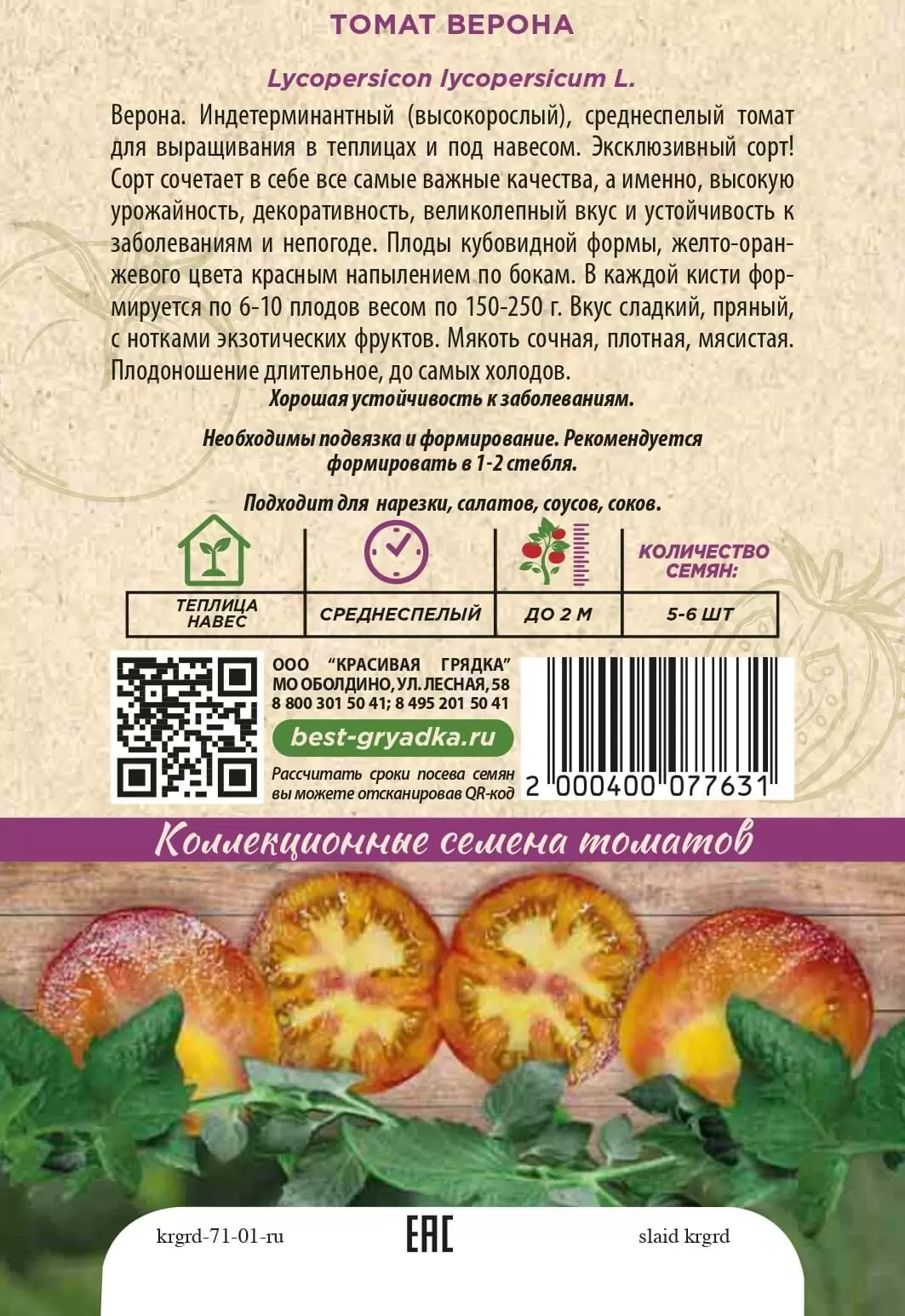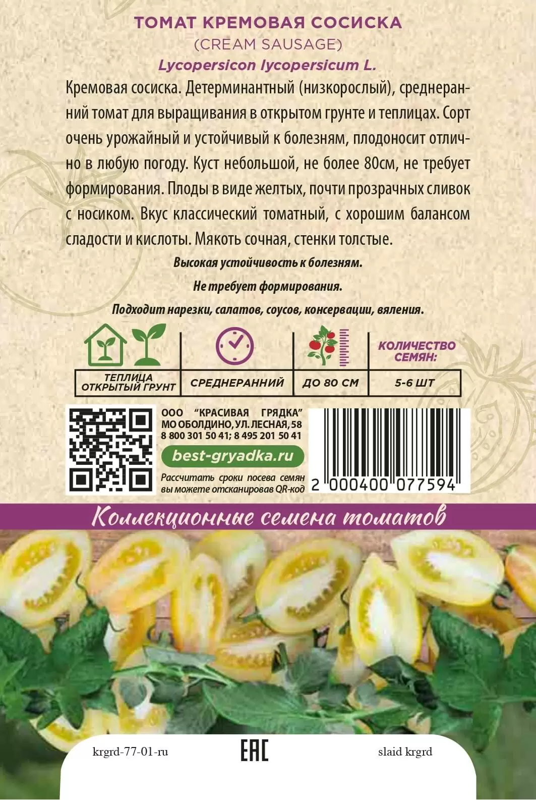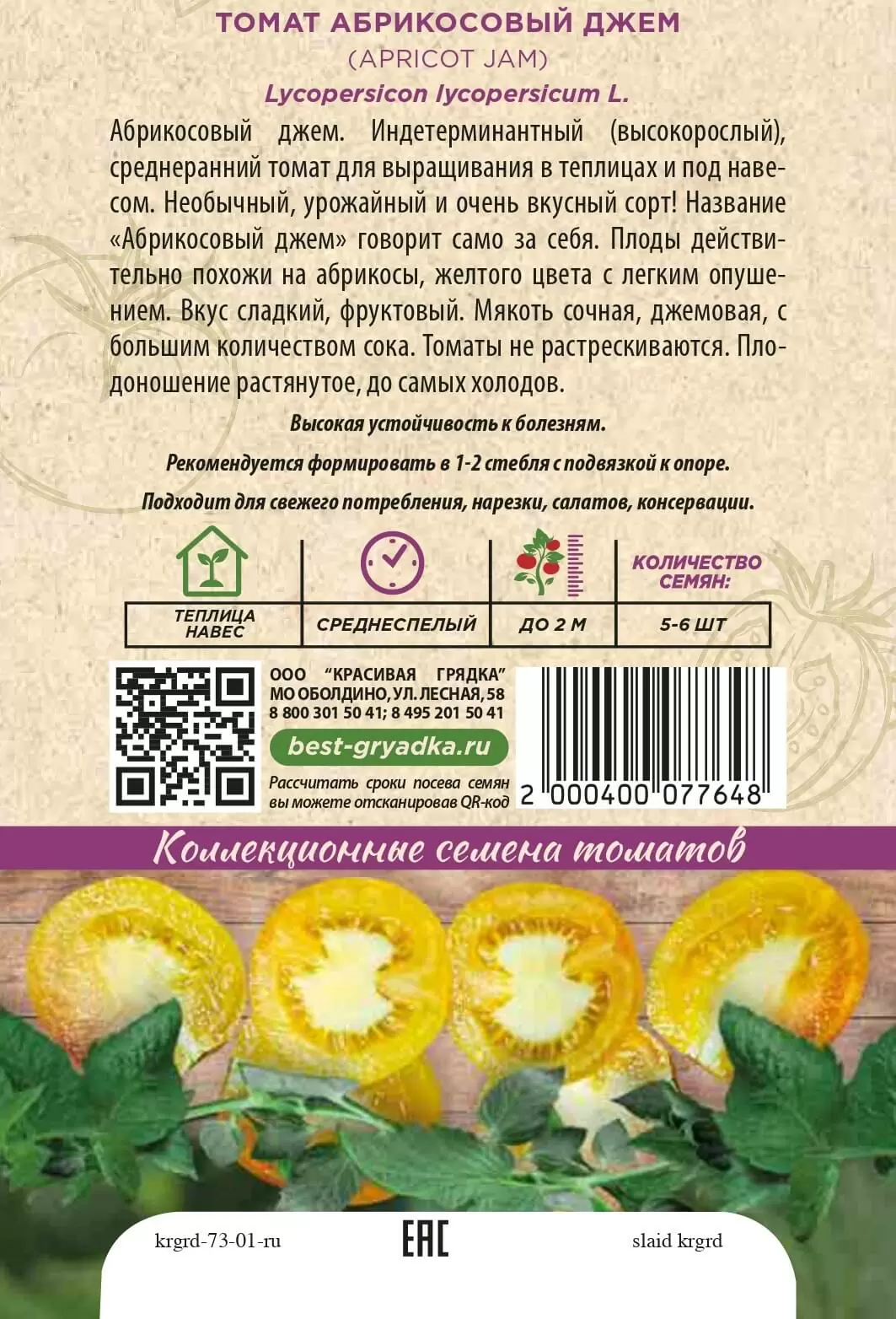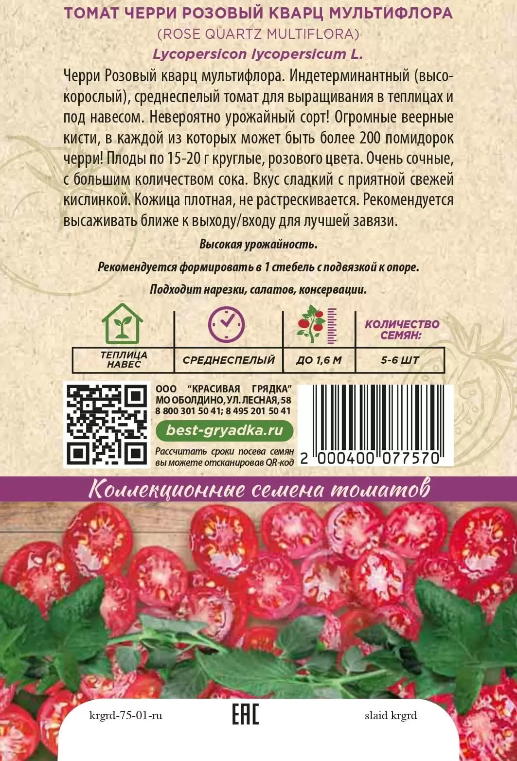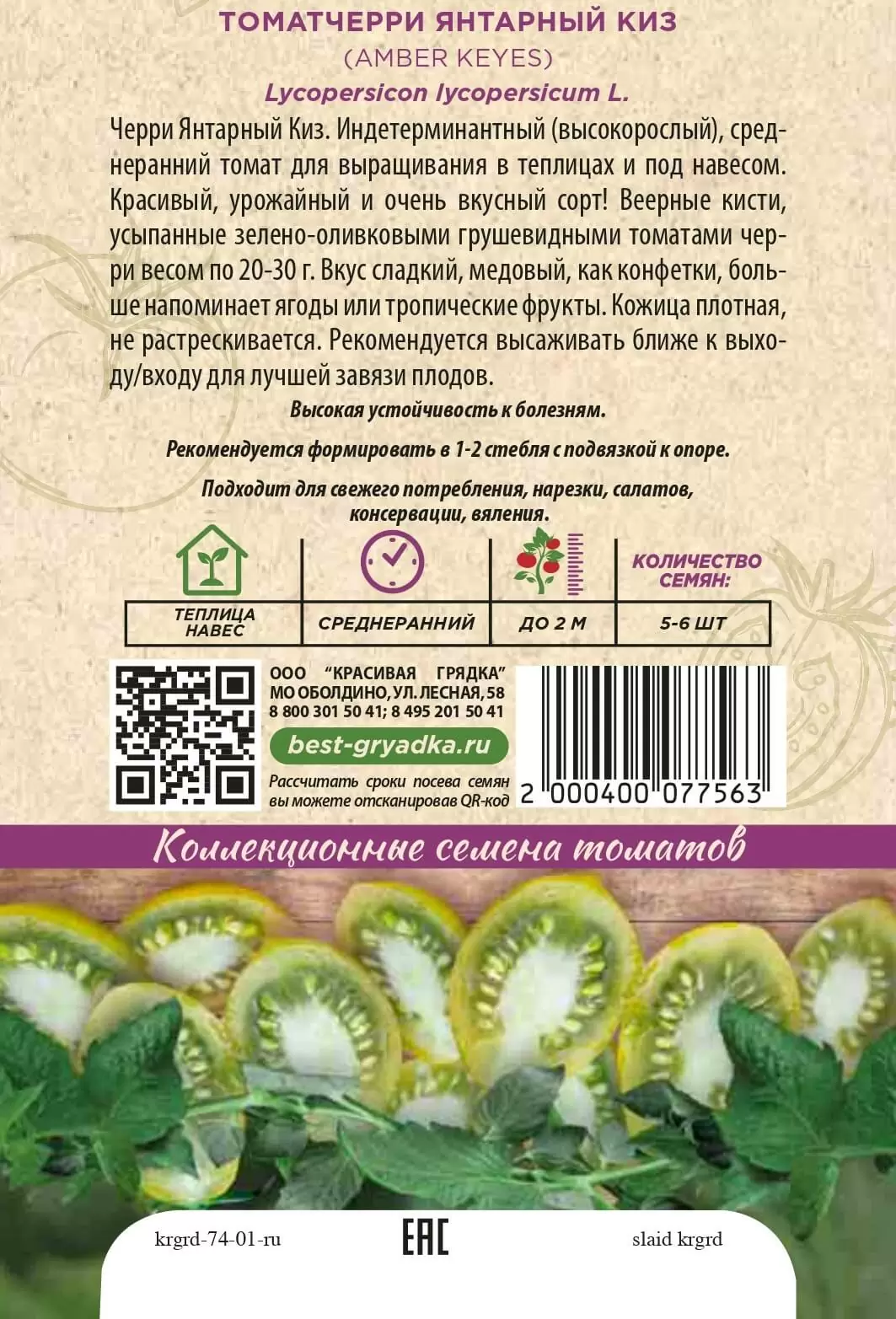 | Реквизиты | Товар, Запас, Зеленый, Черри, Теплица, Сорт, Среднеранний, Красивая Грядка, Индетерминантные, Зеленый, Черри, Теплица, Сорт, Среднеранний, Красивая Грядка, Индетерминантные |