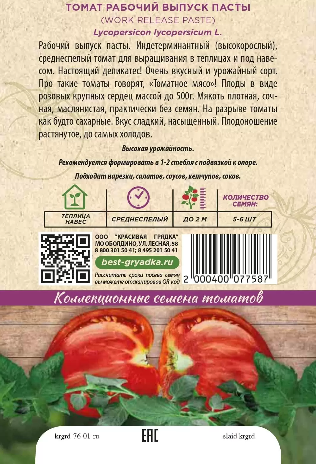 | Реквизиты | Товар, Запас, Коричневый, Сердце, Теплица, Сорт, Среднеспелый, Красивая Грядка, Индетерминантные, Коричневый, Сердце, Теплица, Сорт, Среднеспелый, Красивая Грядка, Индетерминантные |