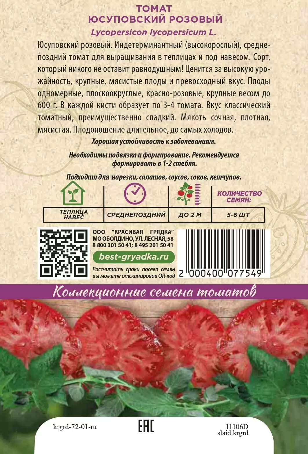 | Реквизиты | Товар, Запас, Розовый, Округлая, Теплица, Сорт, Среднеспелый, Красивая Грядка, Индетерминантные, Розовый, Округлая, Теплица, Сорт, Среднеспелый, Красивая Грядка, Индетерминантные |