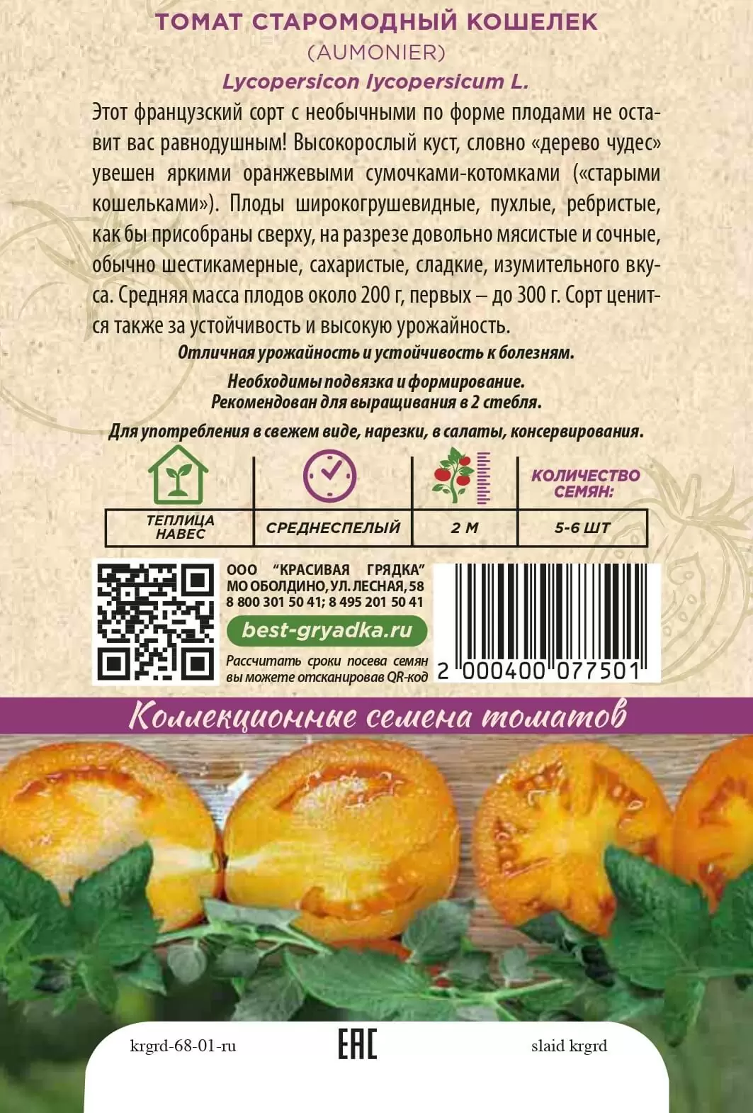 | Реквизиты | Товар, Запас, Желтый, Сердце, Теплица, Сорт, Среднеспелый, Красивая Грядка, Индетерминантные, Желтый, Сердце, Теплица, Сорт, Среднеспелый, Красивая Грядка, Индетерминантные |