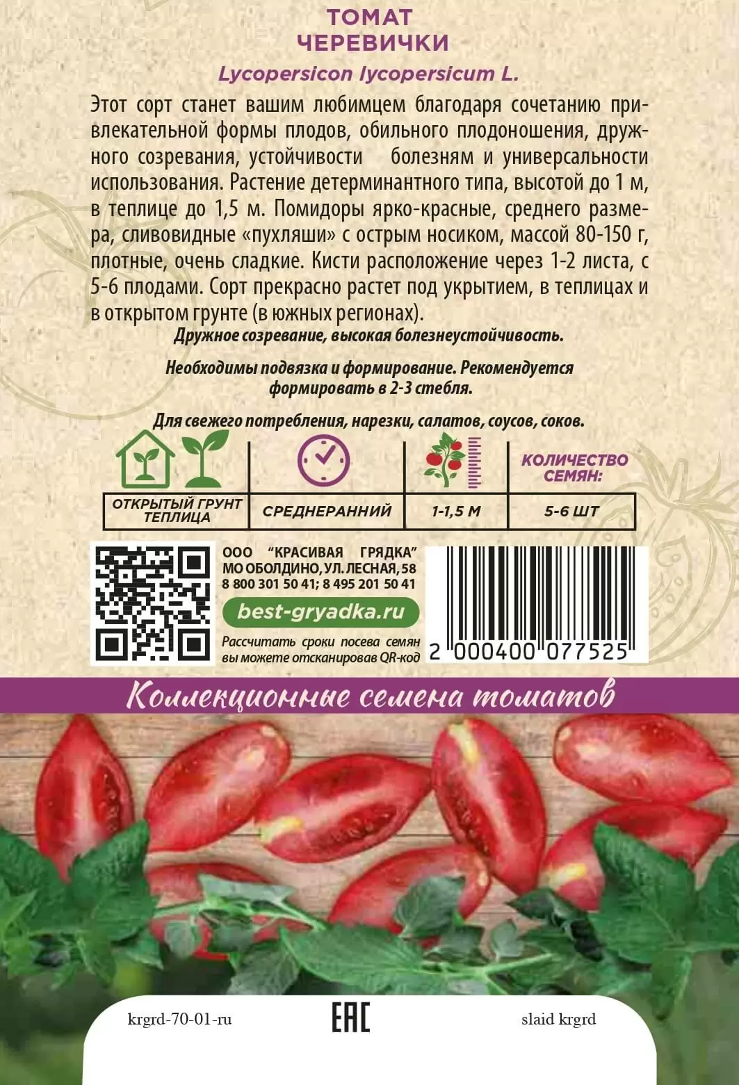 | Реквизиты | Товар, Запас, Красный, Сливовидный, Теплица, Сорт, Среднеранний, Красивая Грядка, Детерминантные, Красный, Сливовидный, Теплица, Сорт, Среднеранний, Красивая Грядка, Детерминантные |